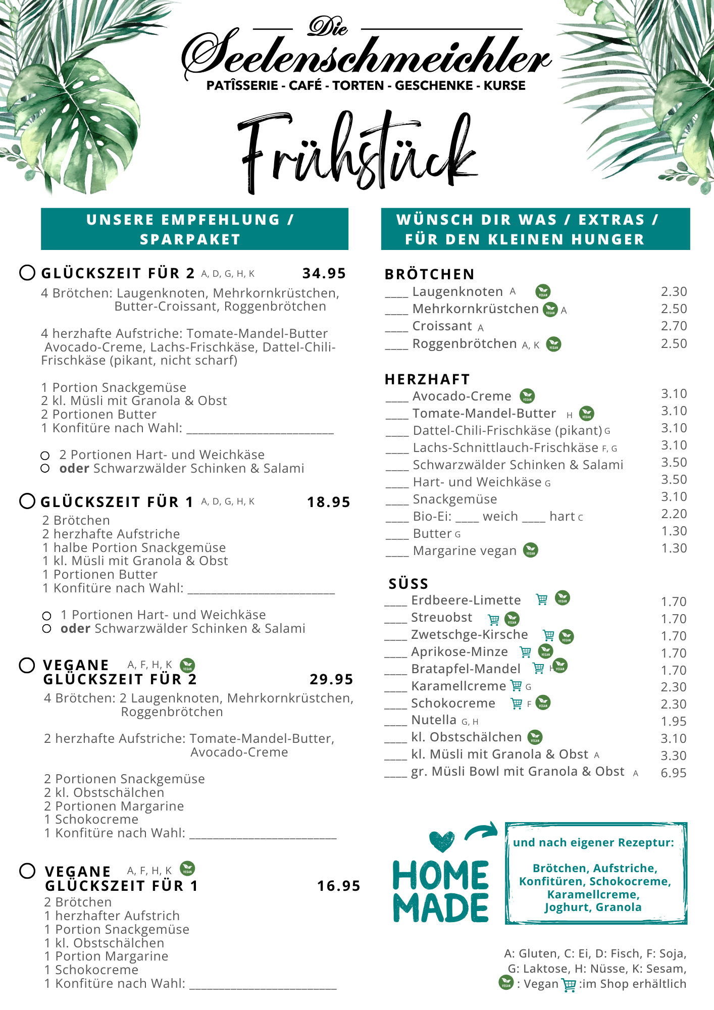 Stellt euch ein Frühstück nach euren Wünschen zusammen, wählt z.B. aus:
